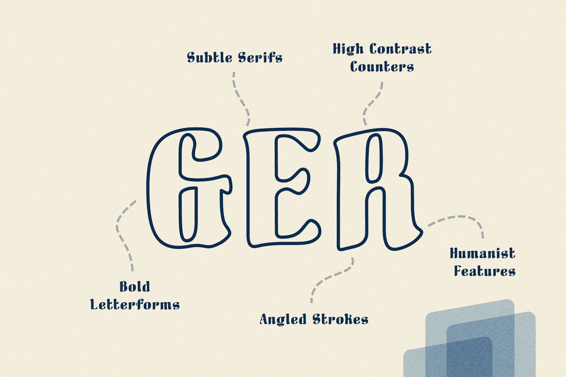 Gilhaus brings 16th Century German type design into the modern day with a complete design overhaul, including contemporary design balancing, spacing, and new age texturing treatments. While subtle serifs and soft edges bring in an element of warmth and approachability, Gilhaus is balanced out by the bold angular strokes and high contrast letterforms typically found in classic Antiqua typography.